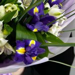 Букет из ярких ирисов и стойкой Альстромерии