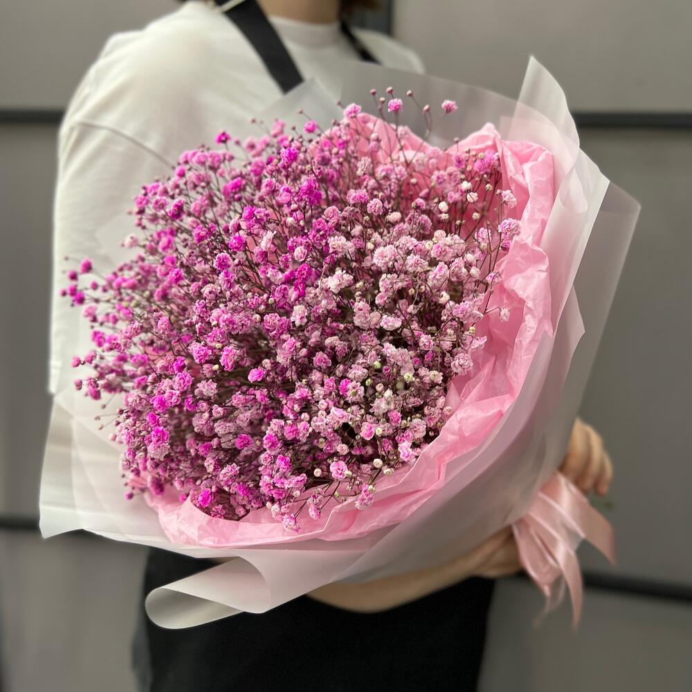 Гипсофила – 7 шт.Тишью – 3 шт.Пленка матовая – 5 шт.Лента атласная – 2 шт.