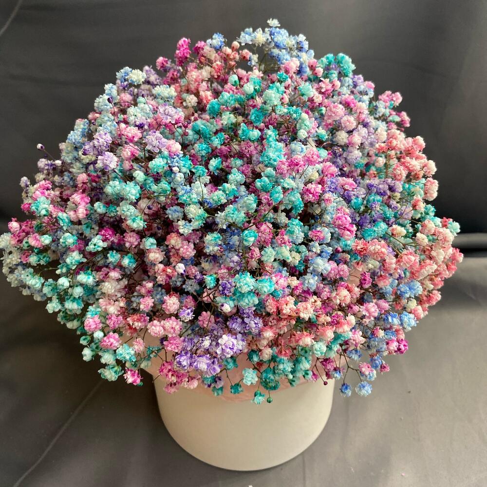 Гипсофила – 9 шт.Шляпная коробка – 1 шт.Упаковка тишью – 1 шт.