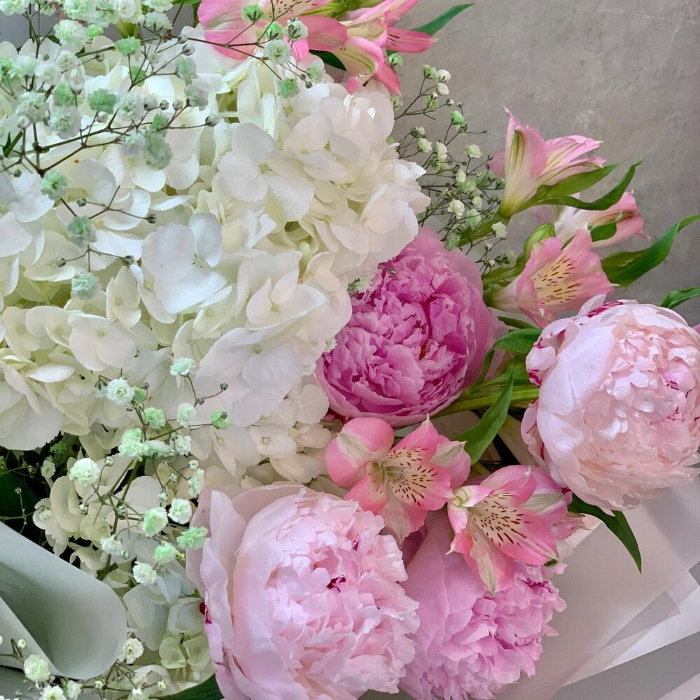 Категории: Альстромерии, Гипсофила, Гортензии, Пионы