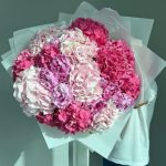 Пион – 9 шт.гортензия ассорти – 14 шт.Упаковка дизайнерская – 1 шт.Лента атласная – 2 шт.Открыточка с вашими пожеланиями – 1 шт.хорошее настроение – 100 шт.инструкция по уходу за цветами – 1 шт.коробка переноска – 1 шт.Кризал – 1 шт.