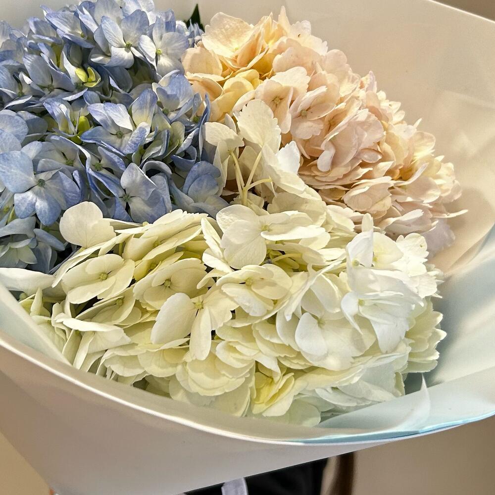 Гортензия – 3 шт.Лента атласная – 2 шт.Упаковка дизайнерская – 3 шт.