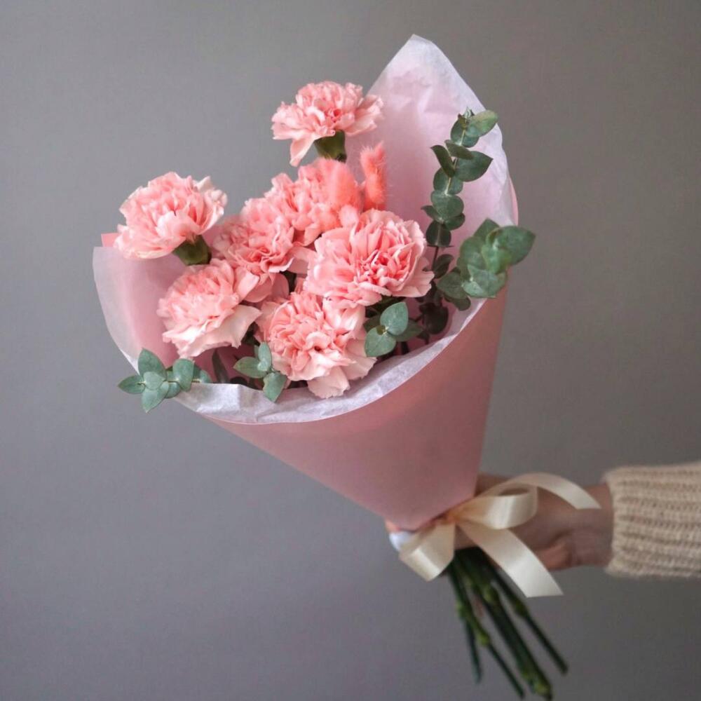 Гвоздики, Лизиантусы, Розы, Тюльпаны