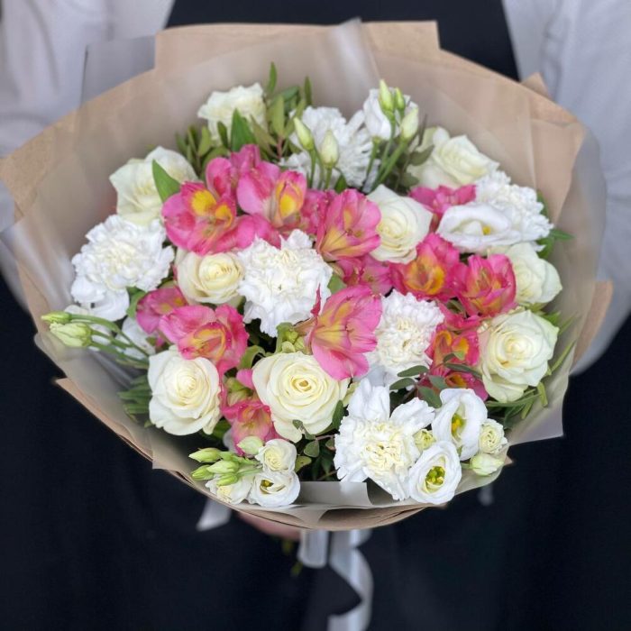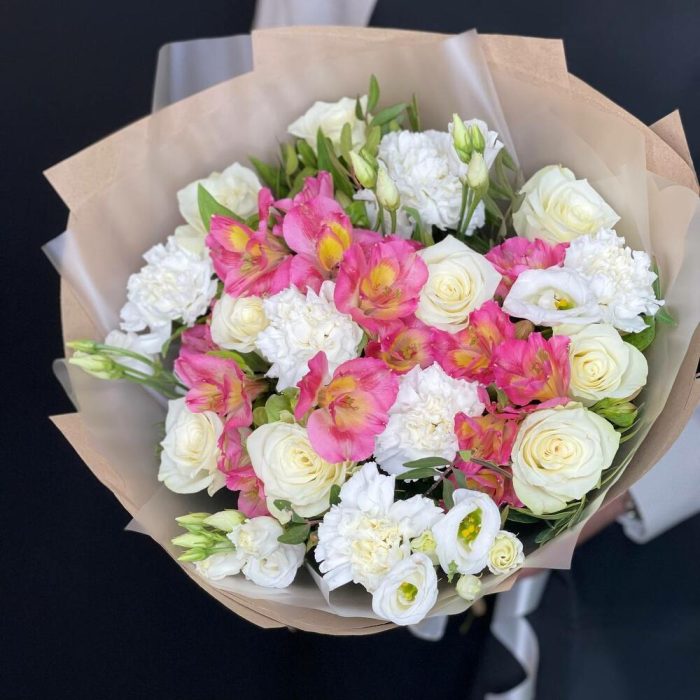 Букет с розовыми альстромериями