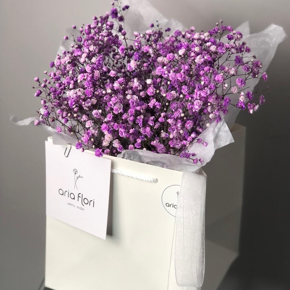 Гипсофила – 4 шт.Тишью – 2 шт.Лента Кружево – 1 шт.коробка транспортировочная – 1 шт.подкормка для срезанных цветов – 1 шт.инструкция по уходу за цветами – 1 шт.записка с вашим текстом – 1 шт.медиант ручной работы из бельгийского шоколада – 1 шт.