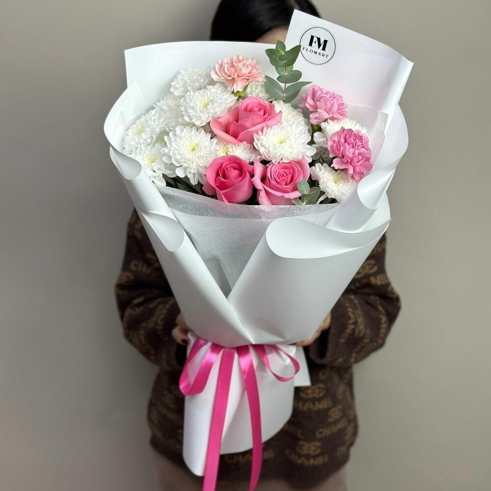 Гвоздики, Лизиантусы, Розы, Тюльпаны