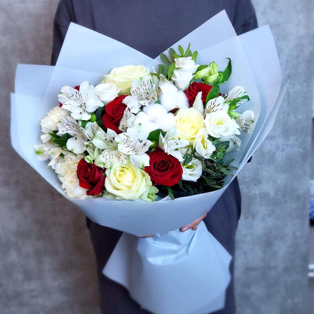 Гвоздики, Кустовые розы, Лизиантусы, Пионовидные розы, Розы