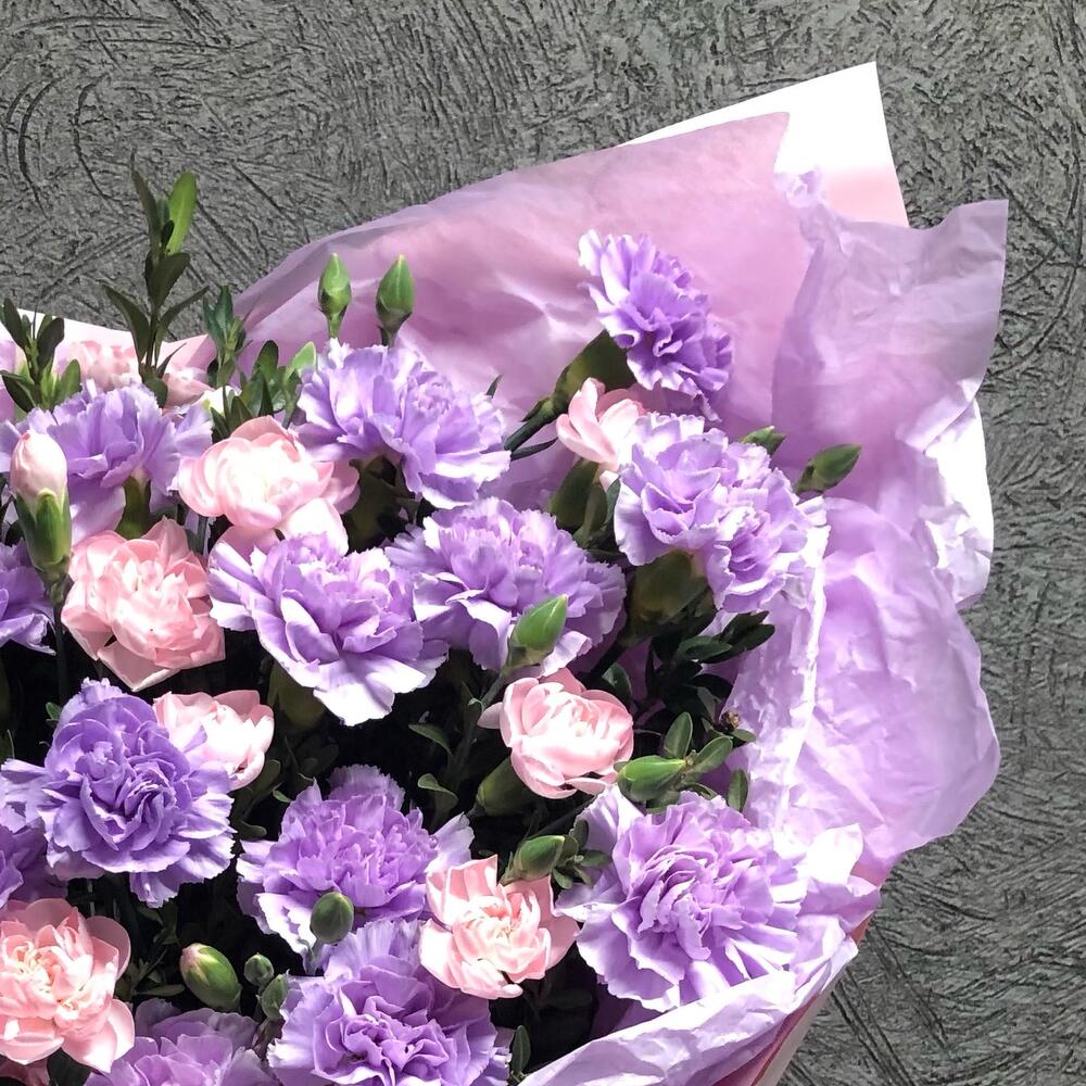 Гвоздики, Лизиантусы, Розы, Тюльпаны
