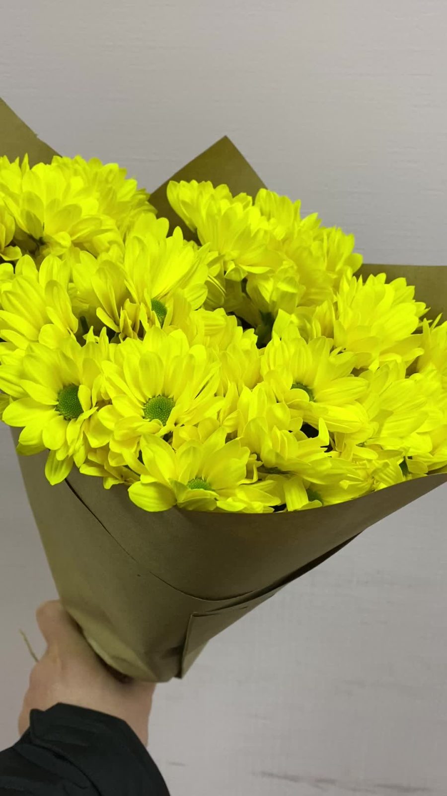 Хризантема кустовая желтая ромашковидная – 5 шт.Крафт упаковка – 1 шт.веревка декоративная – 1 шт.