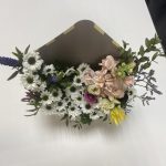 Вероника – 2 шт.Лизиантус – 1 шт.Маттиола – 1 шт.Хризантема – 3 шт.Оазис – 1 шт.Конверт – 1 шт.зелень фисташки – 1 шт.