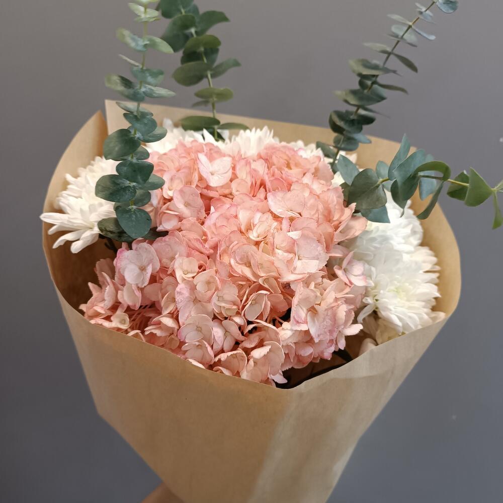 "Эвкалиптическая роскошь" гортензия и пионовидная кустовая роза