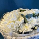 Хризантема Антонов – 1 шт.Хризантема Балтика – 5 шт.Эвкалипт – 1 шт.Ткань – 1 шт.Тишью – 2 шт.Пленка прозрачная – 1 шт.Лента атласная – 1 шт.
