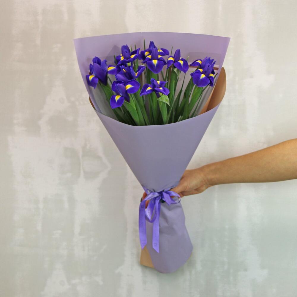 Букет из 9 ирисов в дизайнерской упаковке
