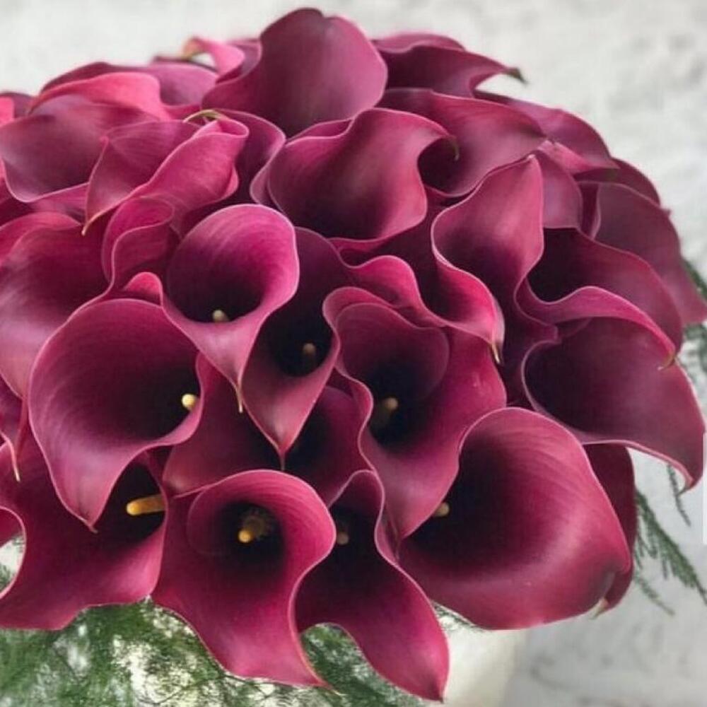 калла бордовая – 29 шт.Лента атласная – 1 шт.Открытка – 1 шт.инструкция по уходу за цветами – 1 шт.хорошее настроение – 100 шт.коробка переноска – 1 шт.Кризал – 1 шт.зелень декоративная – 5 шт.