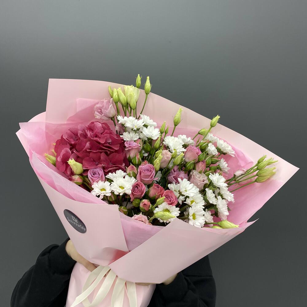 Гвоздики, Кустовые розы, Лизиантусы, Пионовидные розы, Розы