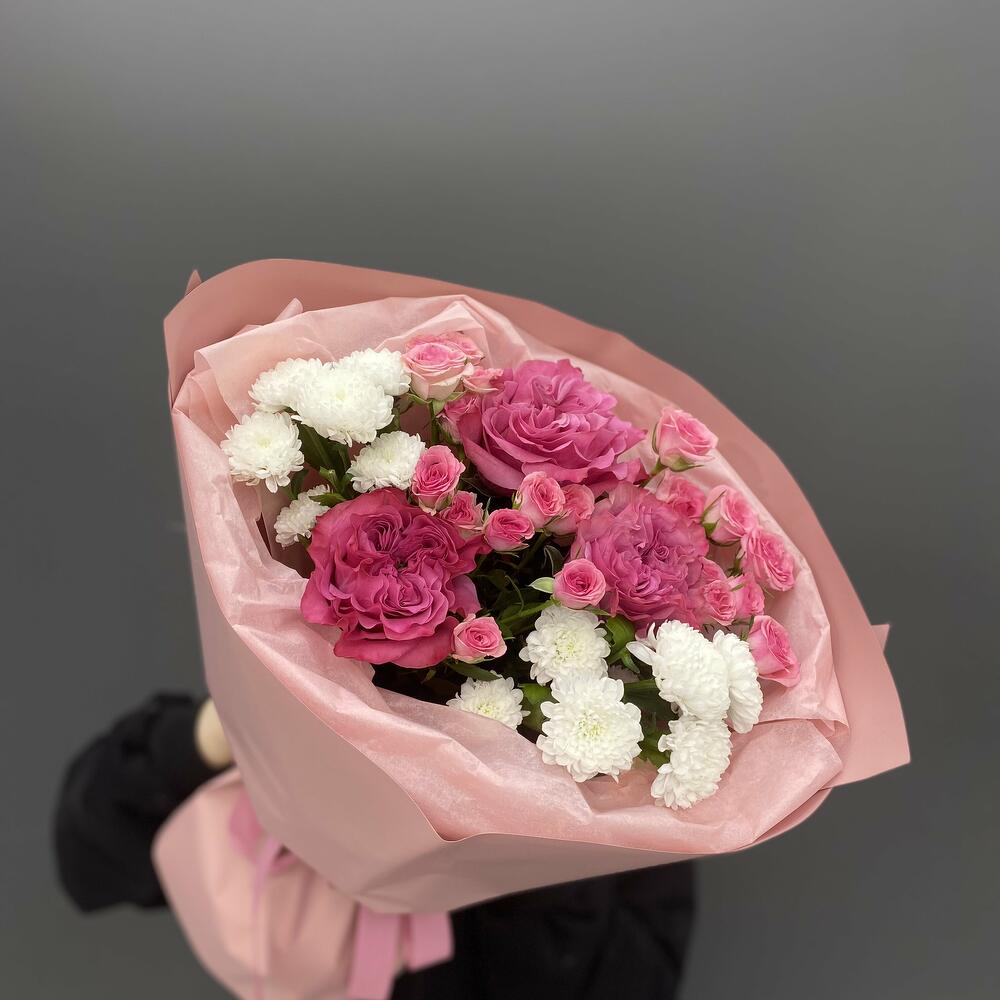 Гвоздики, Кустовые розы, Лизиантусы, Пионовидные розы, Розы