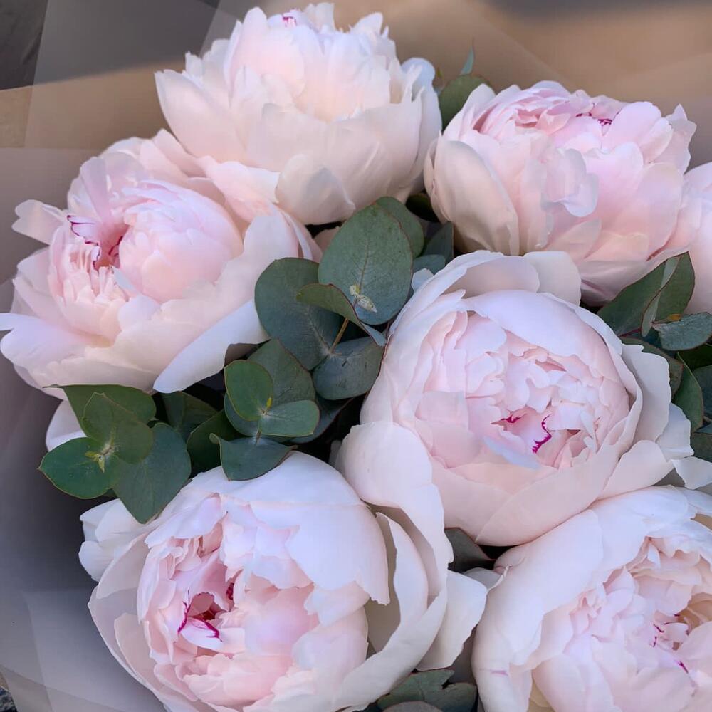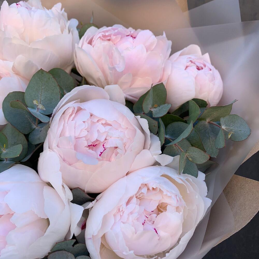 Букет пионов с эвкалиптом