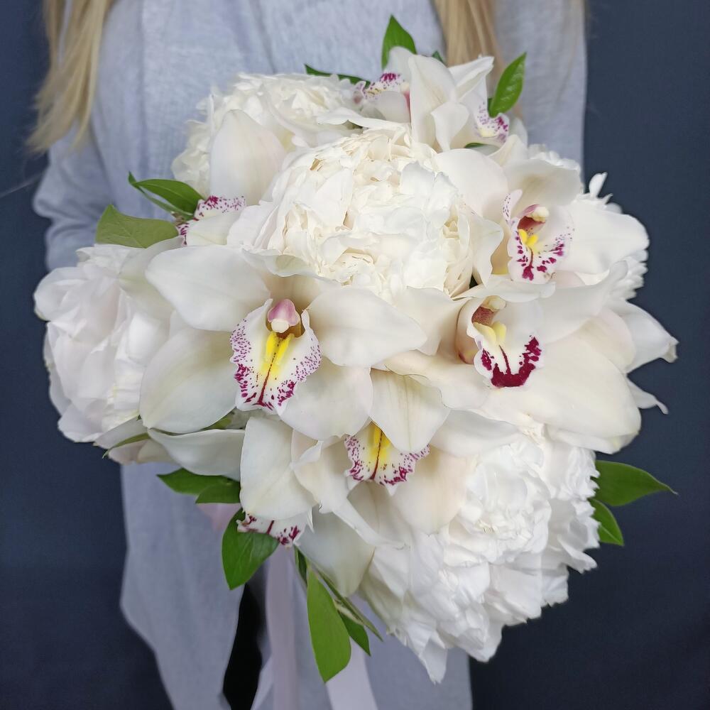Свадебный букет с пионами и орхидеями