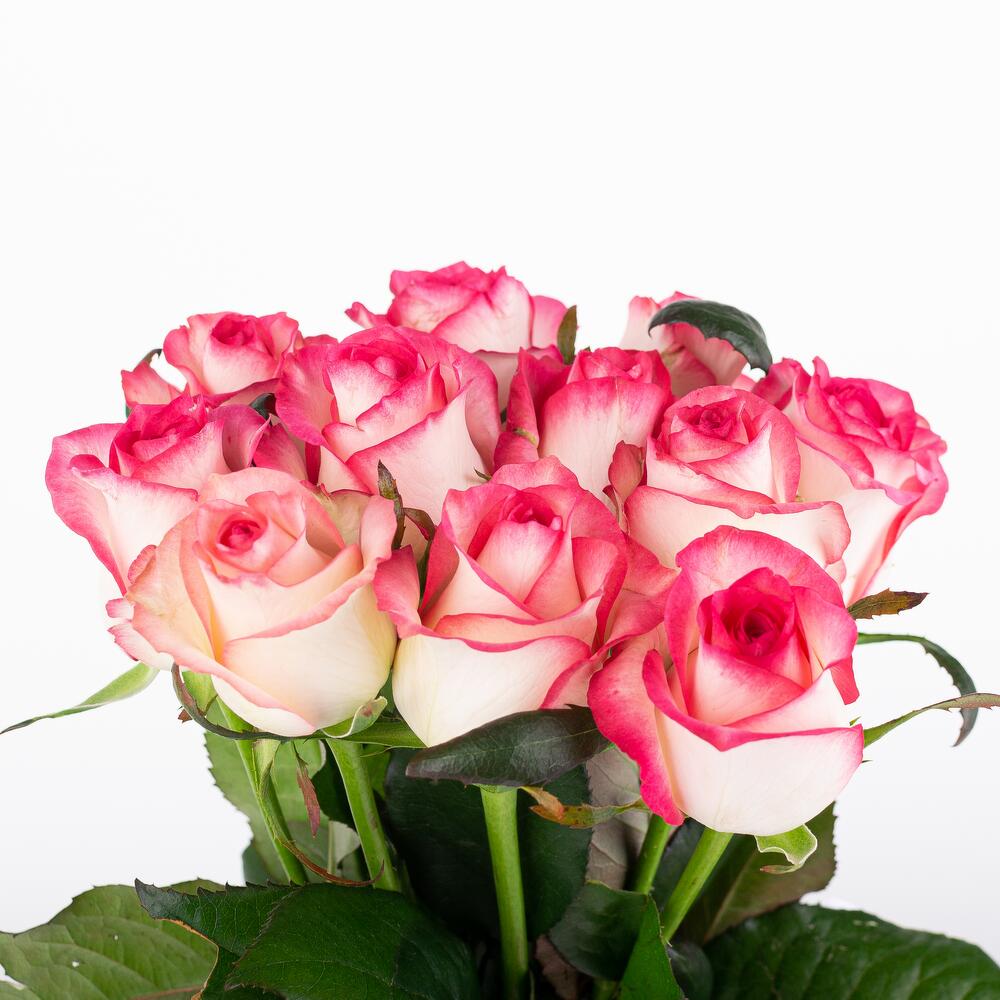 Небольшой букет из 11 бело-розовых роз Джумилия. Такой букет позволит Вам выразить свою симпатию и покорить сердце понравившейся девушки