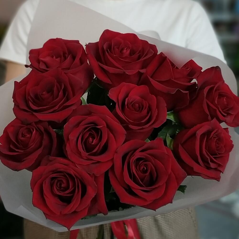 Роза – 11 шт. Лента атласная – 1 шт. Оформление – 1 шт.