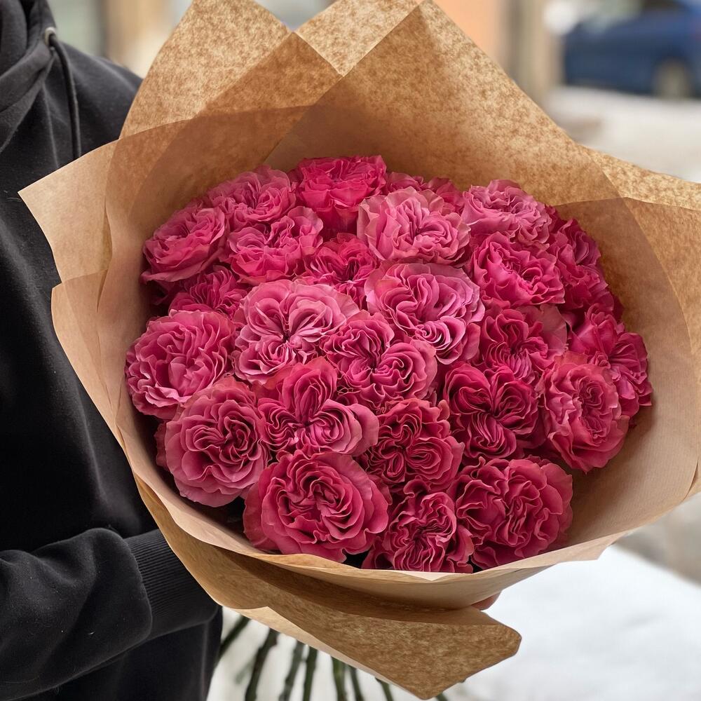 25 пионовидных розовых роз