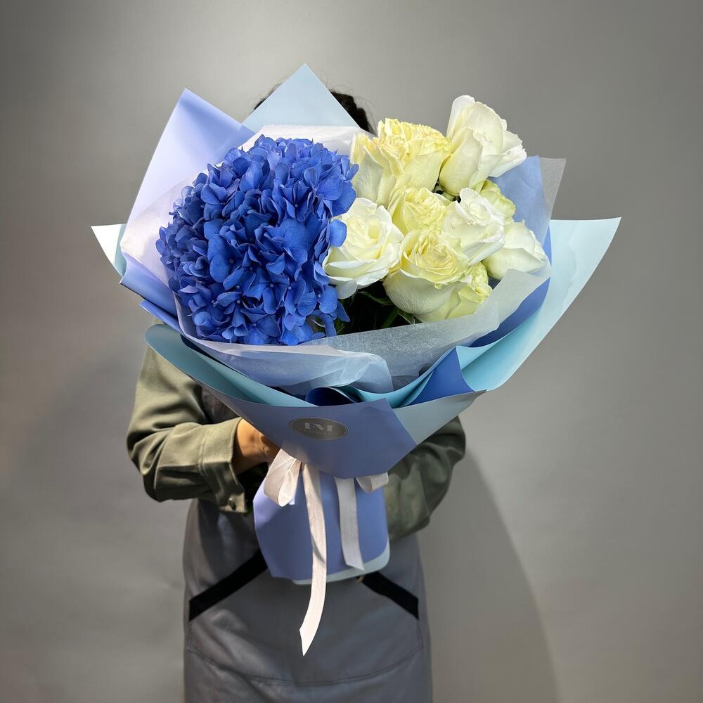 Авторский букет из королевской гортензий и белых роз
