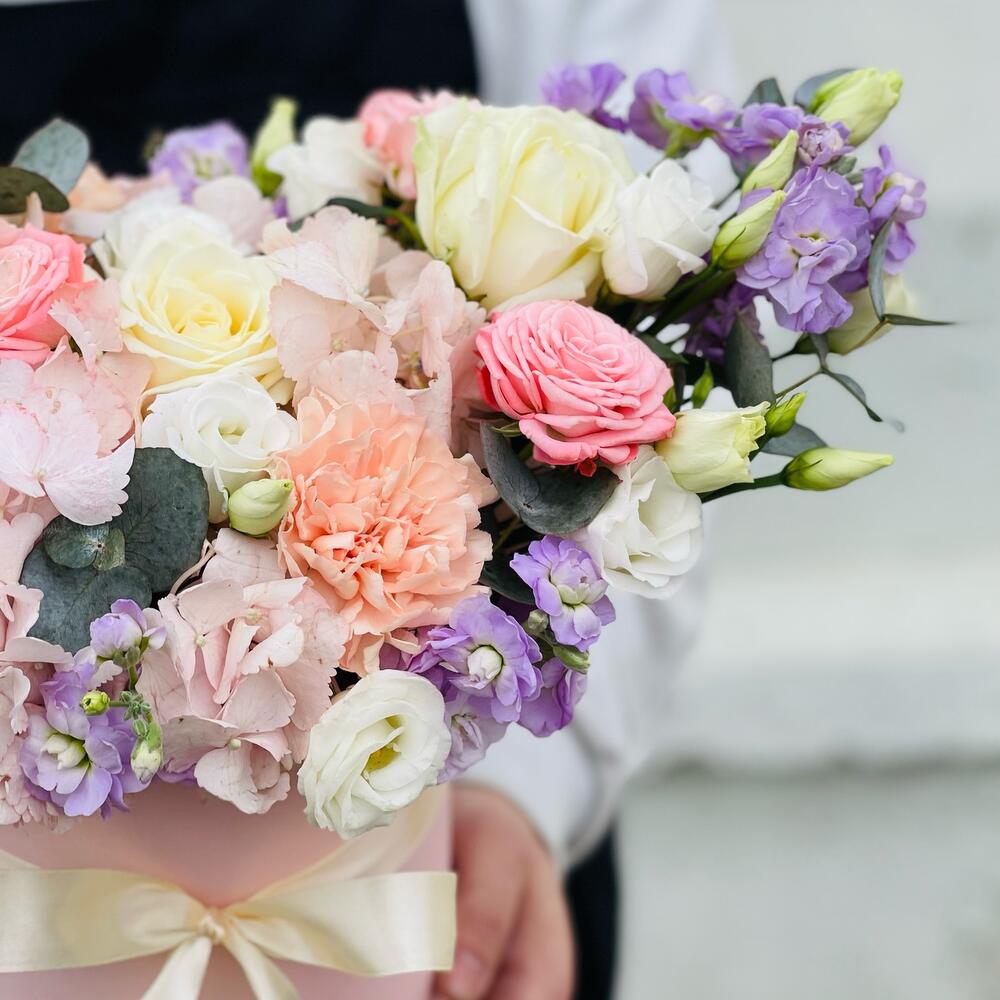 Категории: Гвоздики, Гортензии, Лизиантусы, Розы