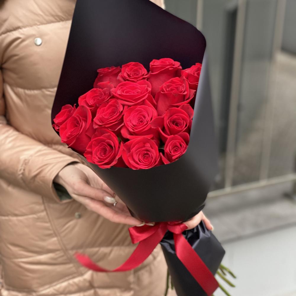 роза красная фридом – 15 шт. Оформление – 1 шт.