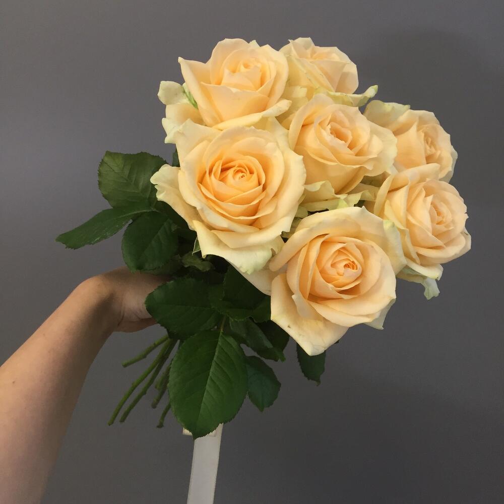 Роза аваланж пич 50 см – 7 шт.Лента атласная – 1 шт.Аквабокс – 1 шт.коробка транспортировочная – 1 шт.