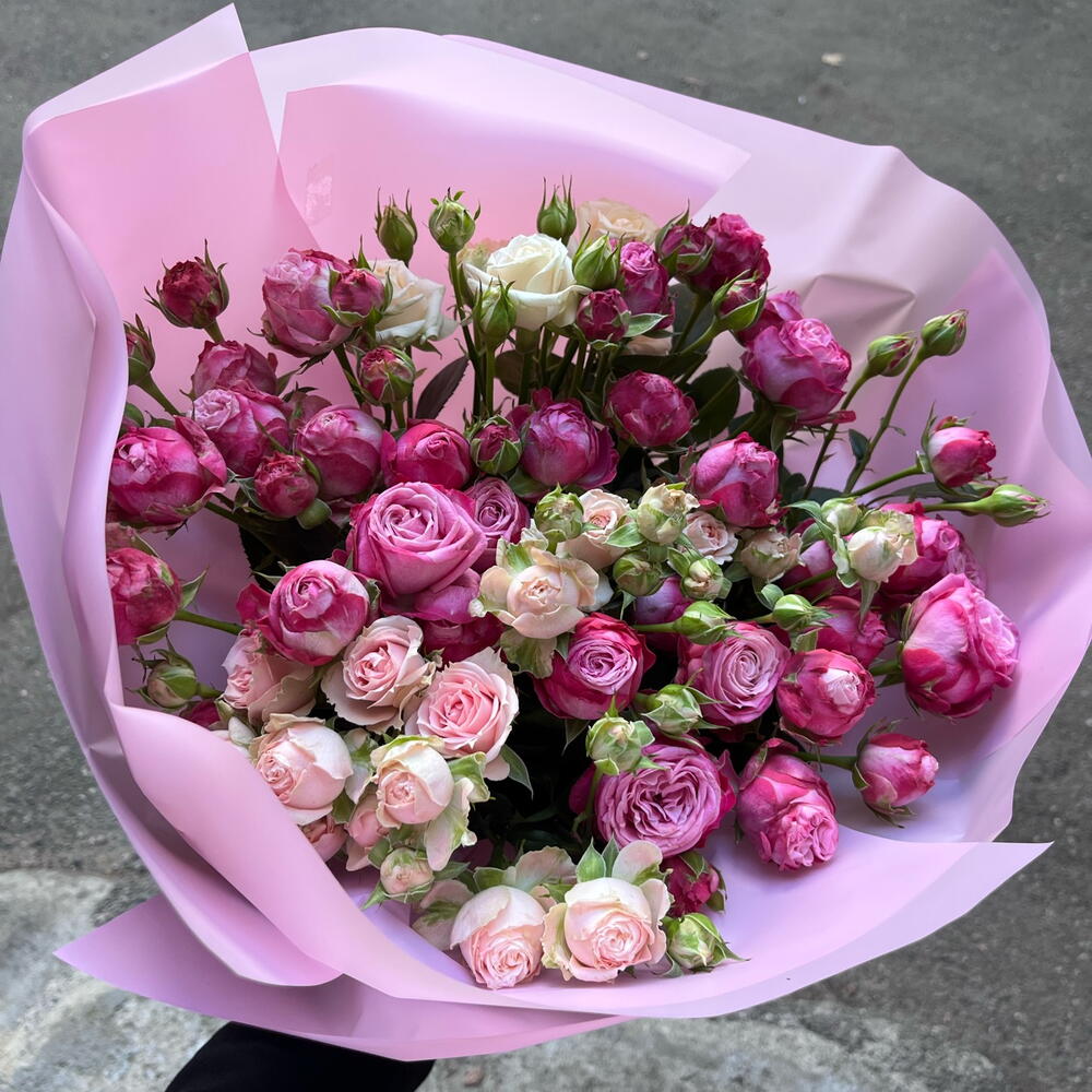 Альстромерии, Кустовые розы, Лизиантусы, Пионовидные розы, Розы, Ромашки