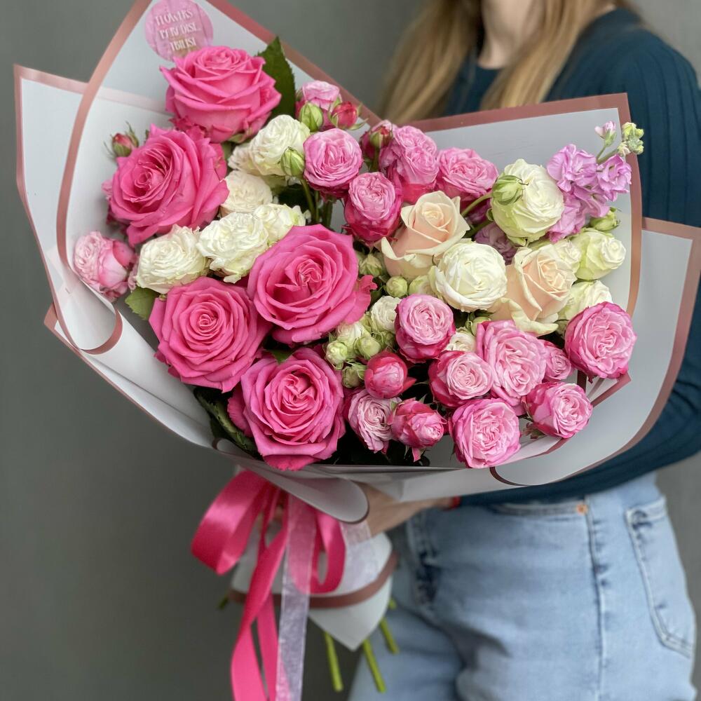 Букет микс из кустовой и одноголовой розы