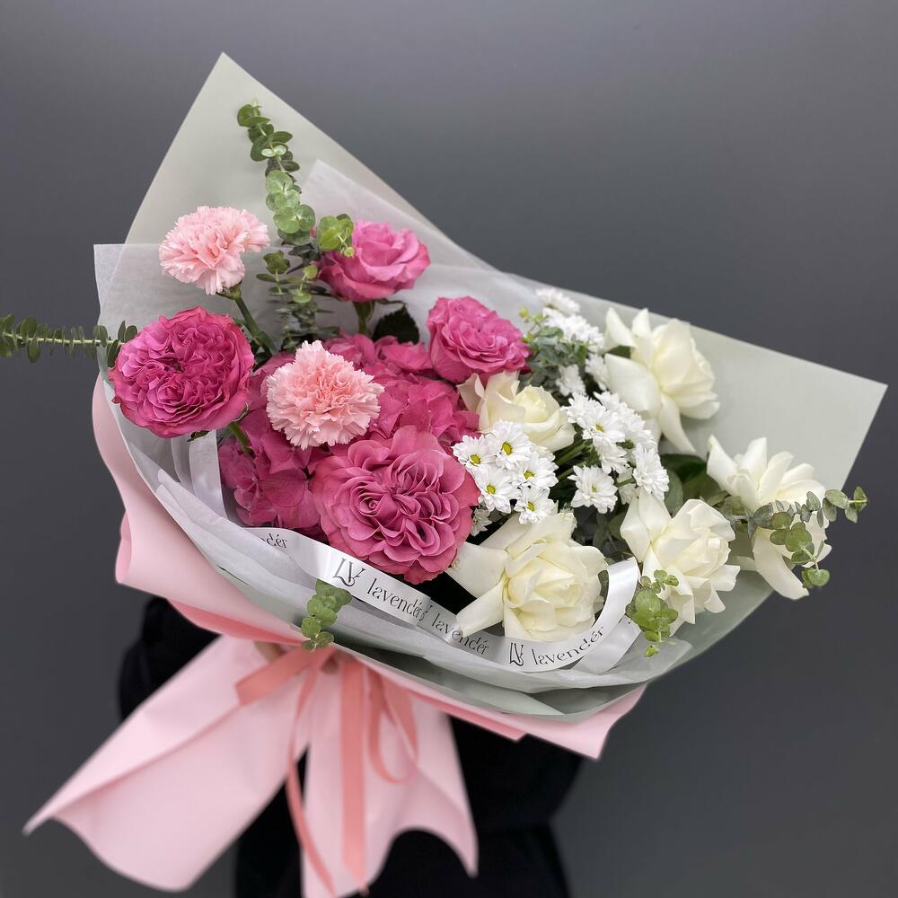 Кустовые розы, Лизиантусы, Розы, Сухоцвет