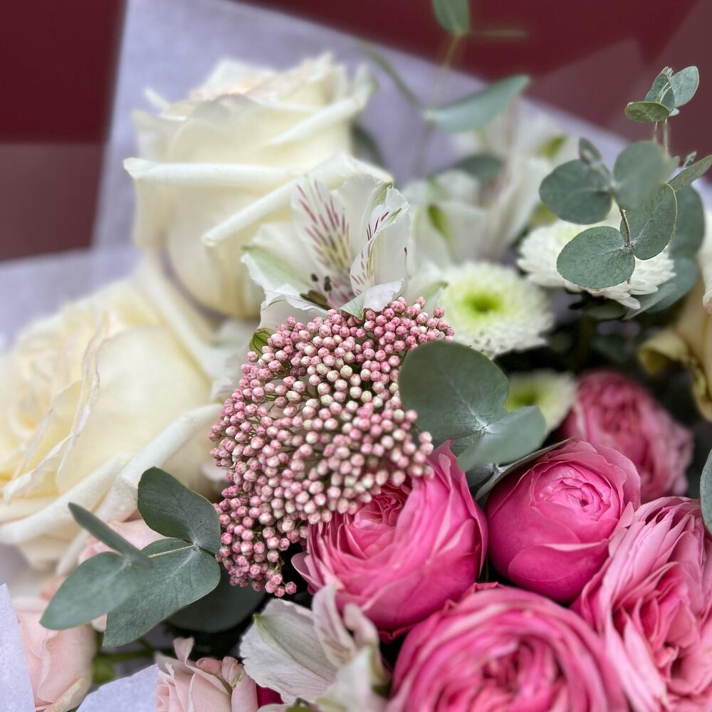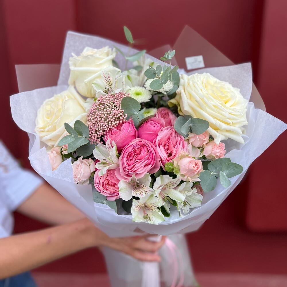 Кустовые розы, Лизиантусы, Пионы, Розы, Хризантемы
