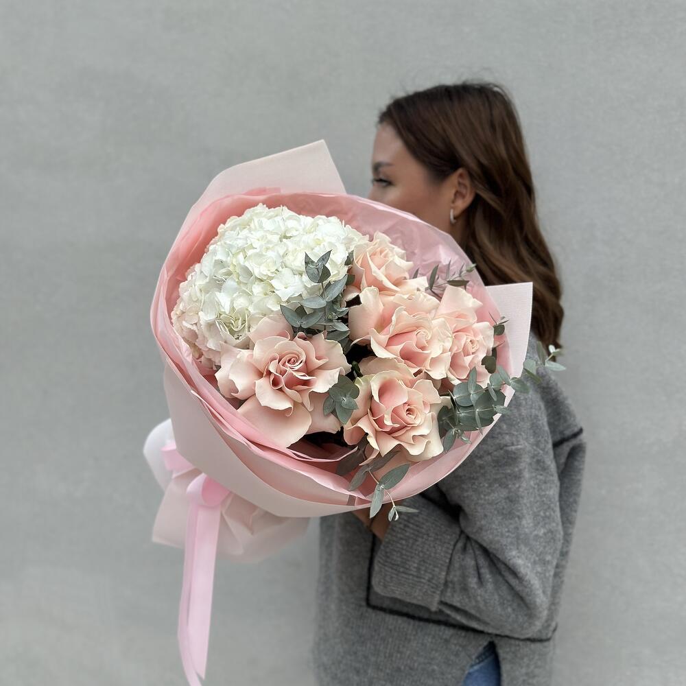 Альстромерии, Кустовые розы, Лизиантусы, Пионовидные розы, Розы, Ромашки