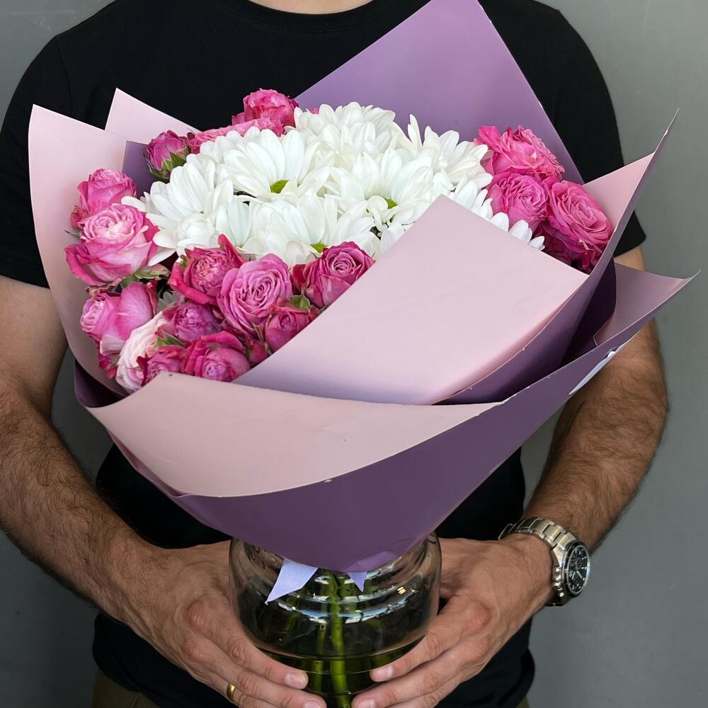 Гвоздики, Кустовые розы, Пионовидные розы, Розы