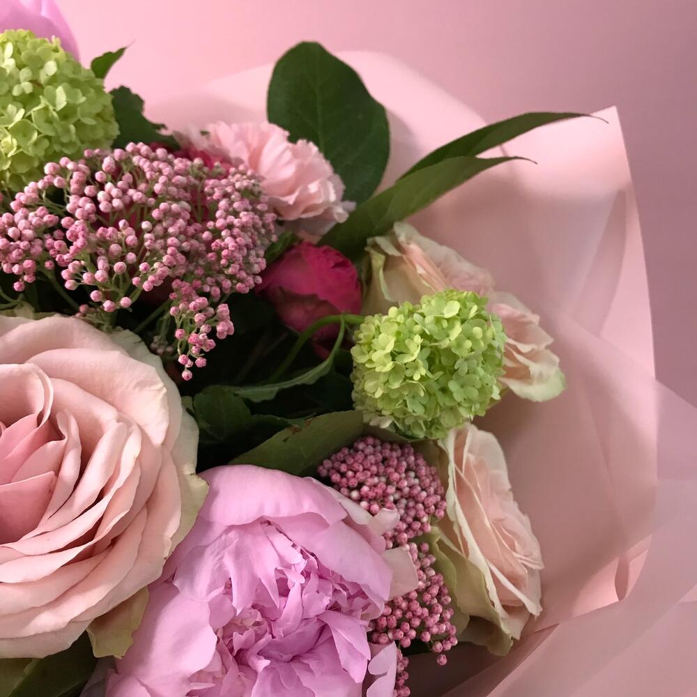Букет с пионами в пудровых тонах