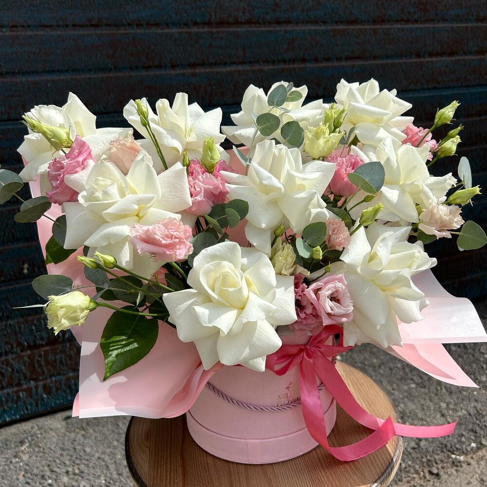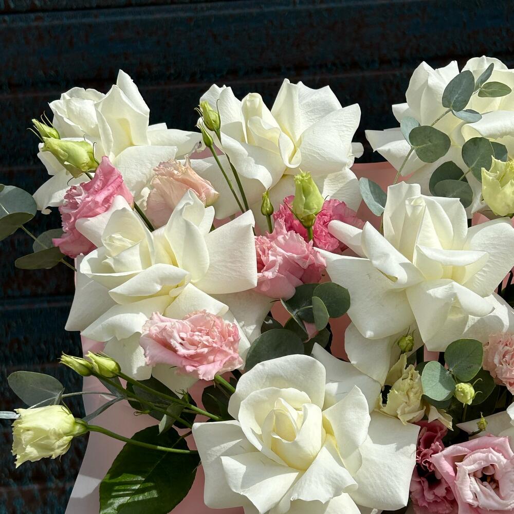 Альстромерии, Гвоздики, Кустовые розы, Лизиантусы, Розы, Хризантемы