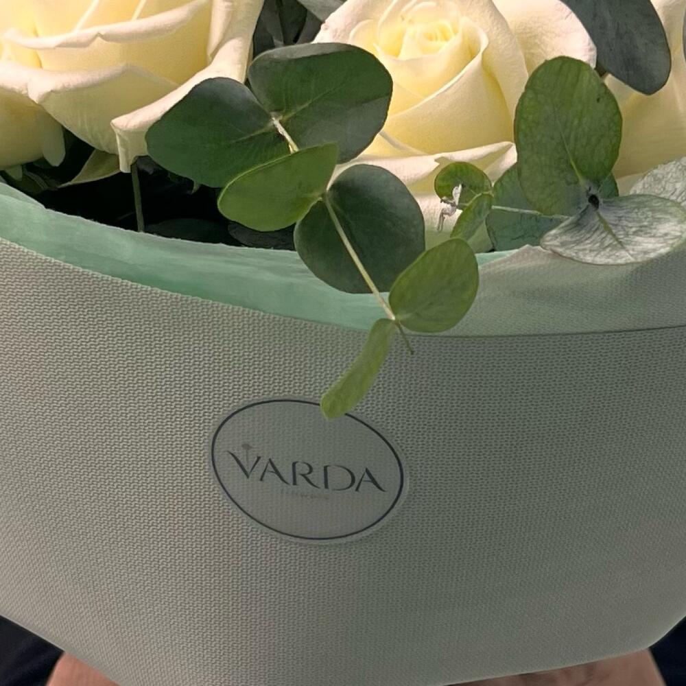 Флористы из студии "Varda Flowers" подобрали свежие и красивые цветы для создания букета, который наполнен положительными эмоциями и любовью. Они тщательно расположили каждый цветок в букете, учитывая его форму и цветовую гамму, чтобы достичь наилучшего гармоничного и красивого результата.