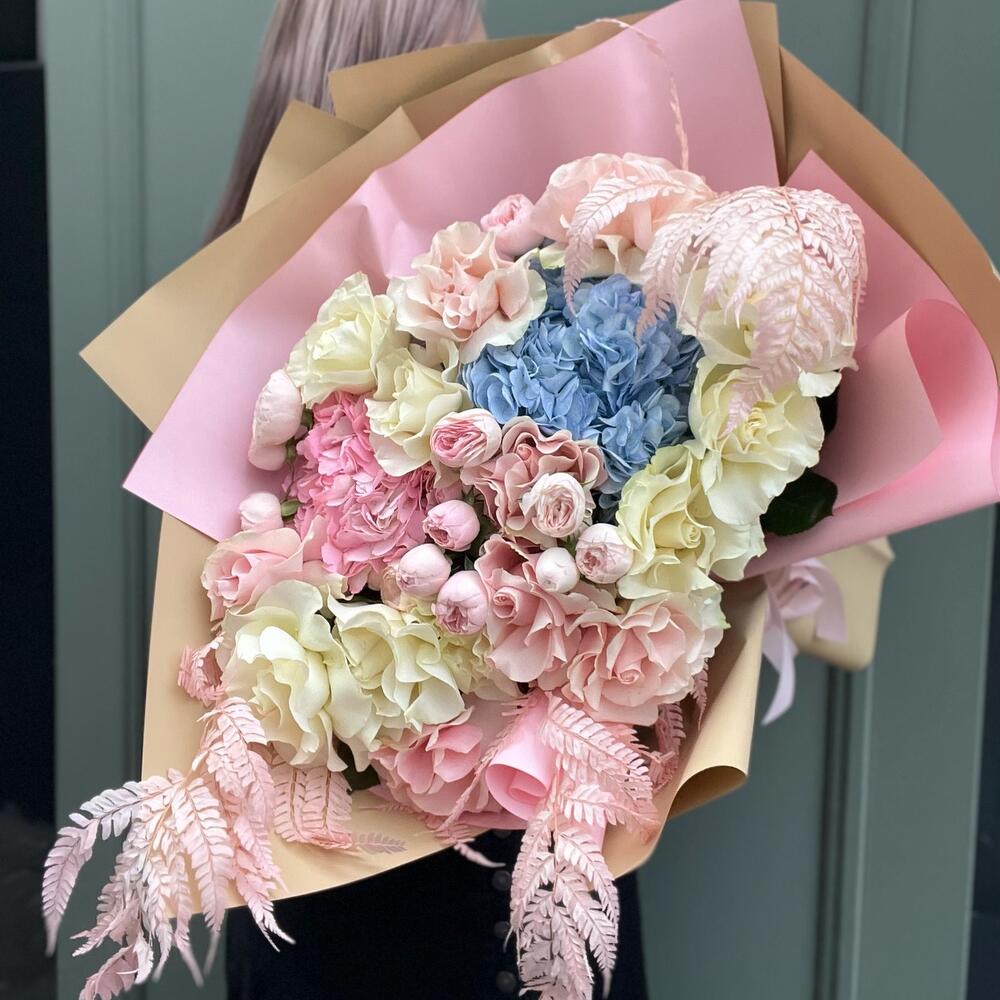 “Эвкалиптическая роскошь” гортензия и пионовидная кустовая роза