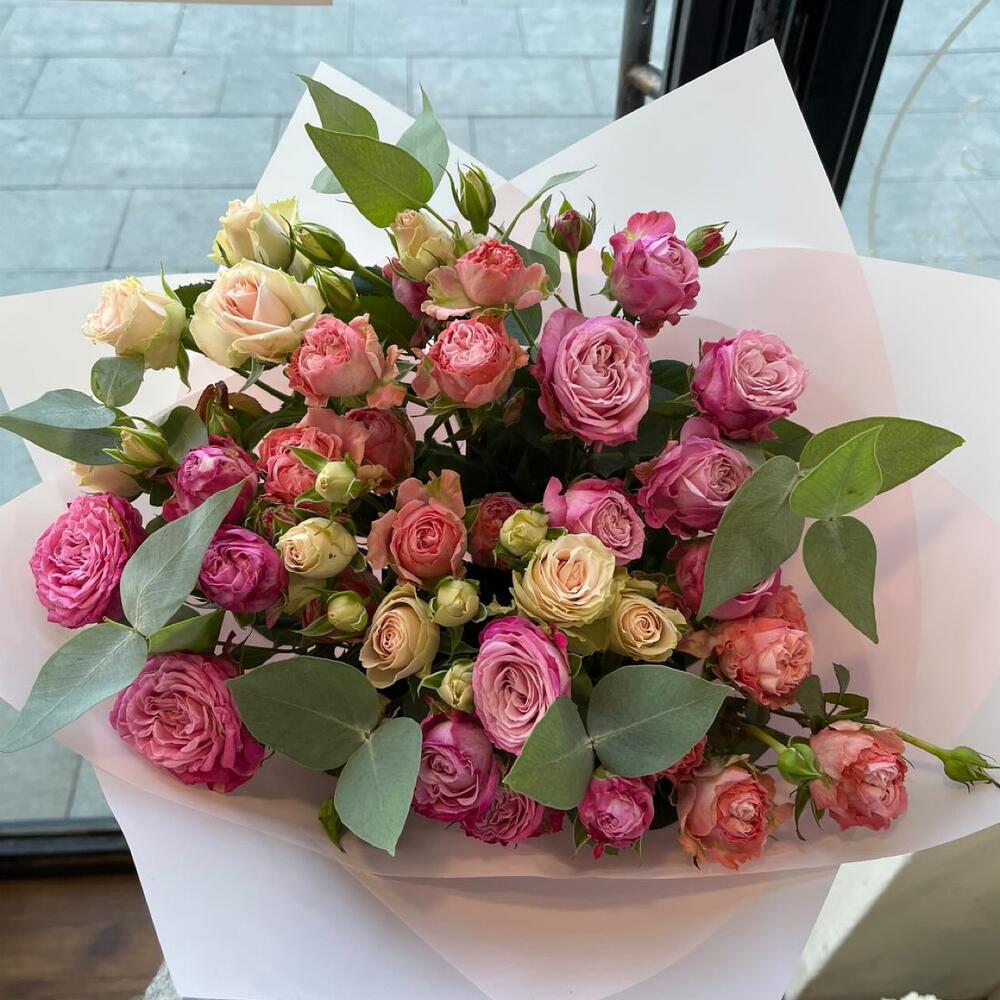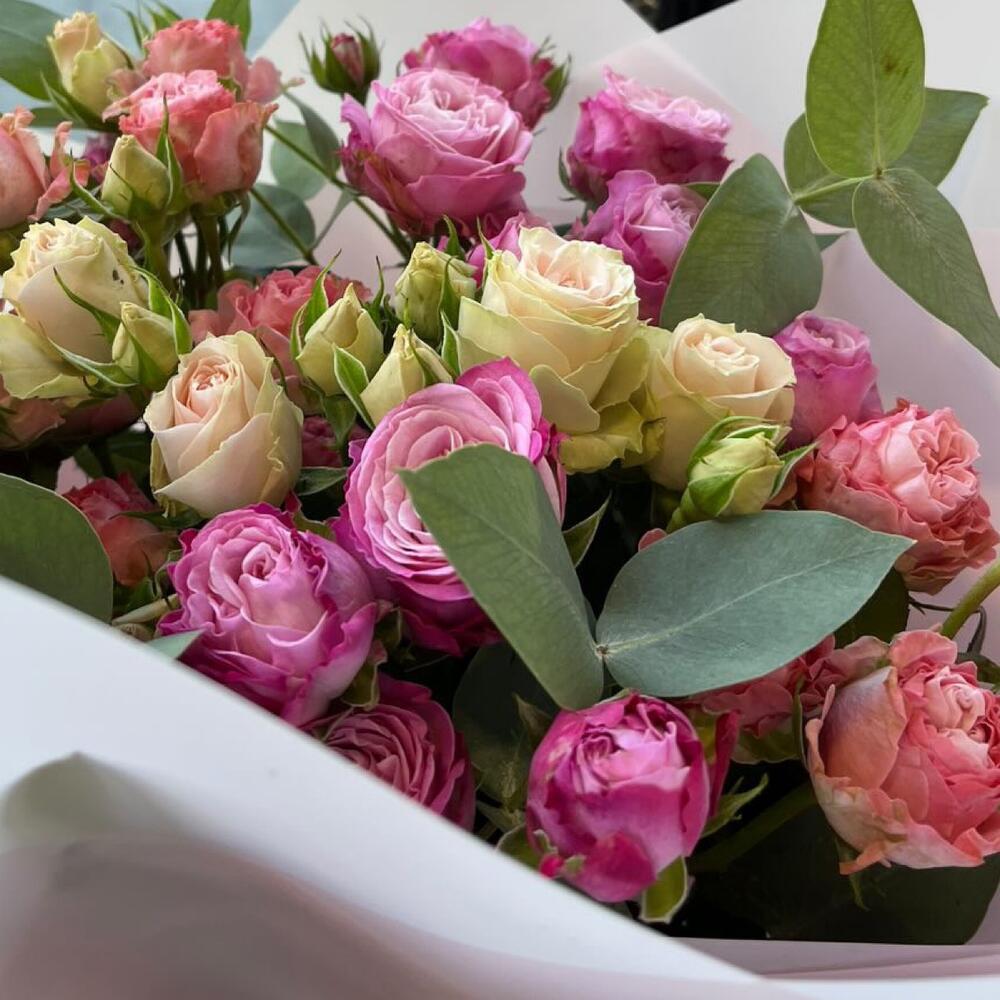 Альстромерии, Кустовые розы, Лизиантусы, Пионовидные розы, Розы, Ромашки