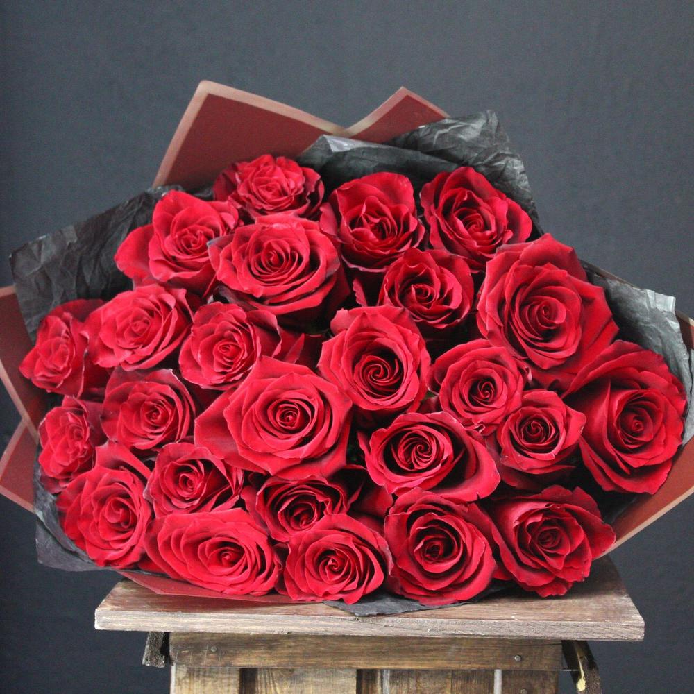 Роза Эквадор Премиум – 25 шт.Тишью – 2 шт.Пленка матовая – 2 шт.
