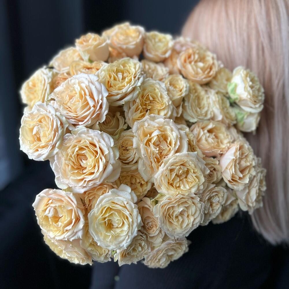 Роза кустовая пионовидная – 15 шт.Лента атласная – 1 шт.