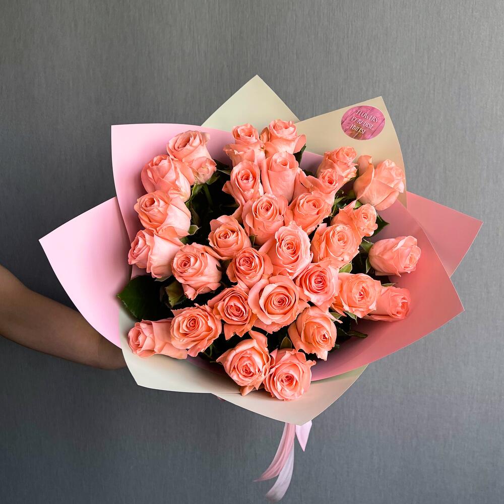 Роза – 29 шт. Упаковка – 1 шт. Атласная лента – 1 шт.