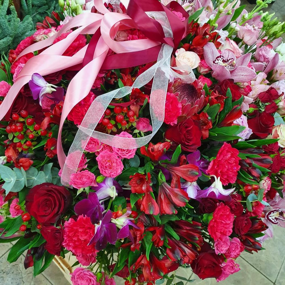 Огромная корзина свежих цветов