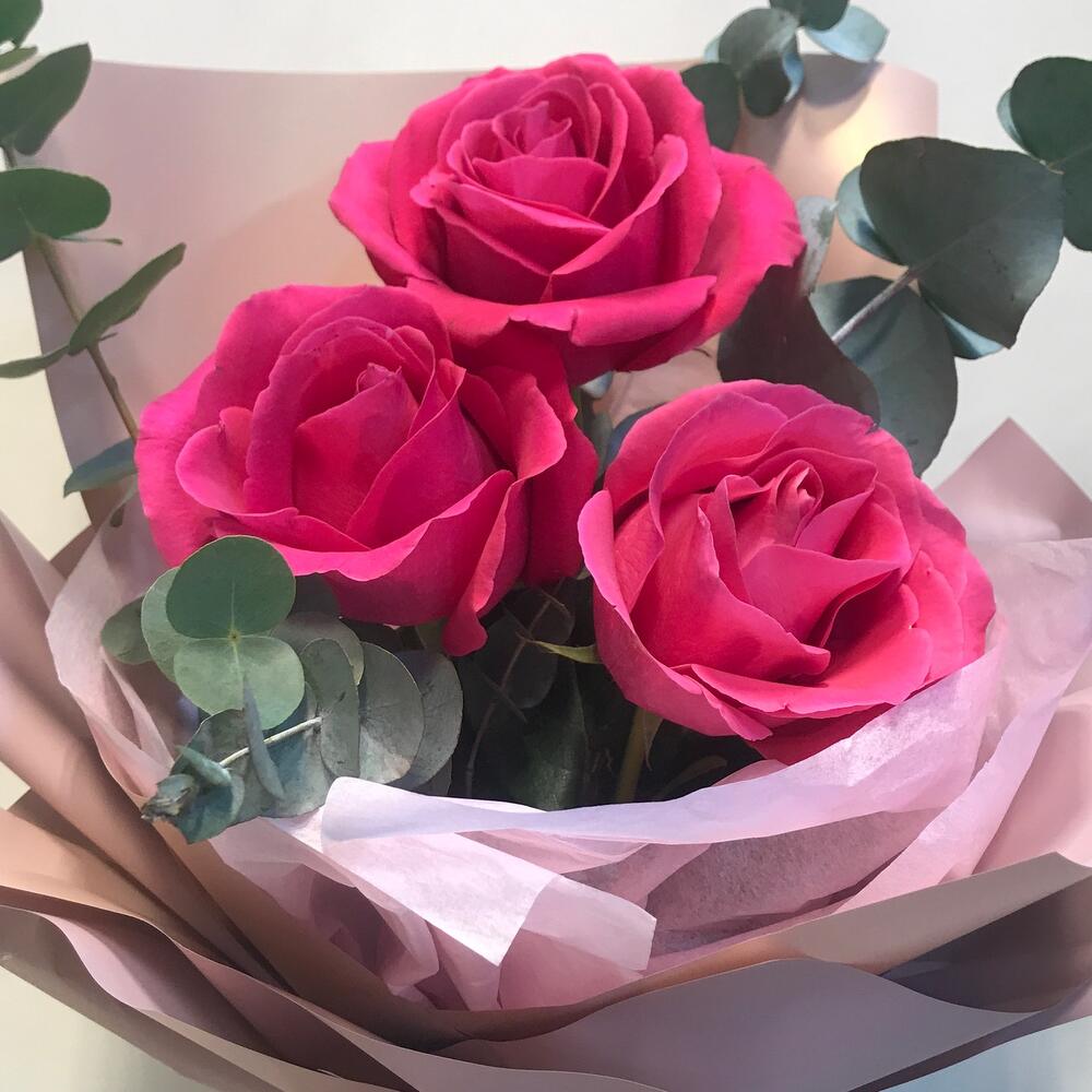 Шикарные цикламеновые розы и крупный эвкалипт отлично впишутся в любой интерьер и будут долго радовать ваш глаз!Наши розы стоят до 3-х недельВы можете заказать подкормку для цветов дополнительно к любому из доступных букетов в наличии, чтобы радовать своих близких еще дольше. Он значительно упрощает уход за цветами, позволяет не подрезать цветы и не менять в них воду каждый день!