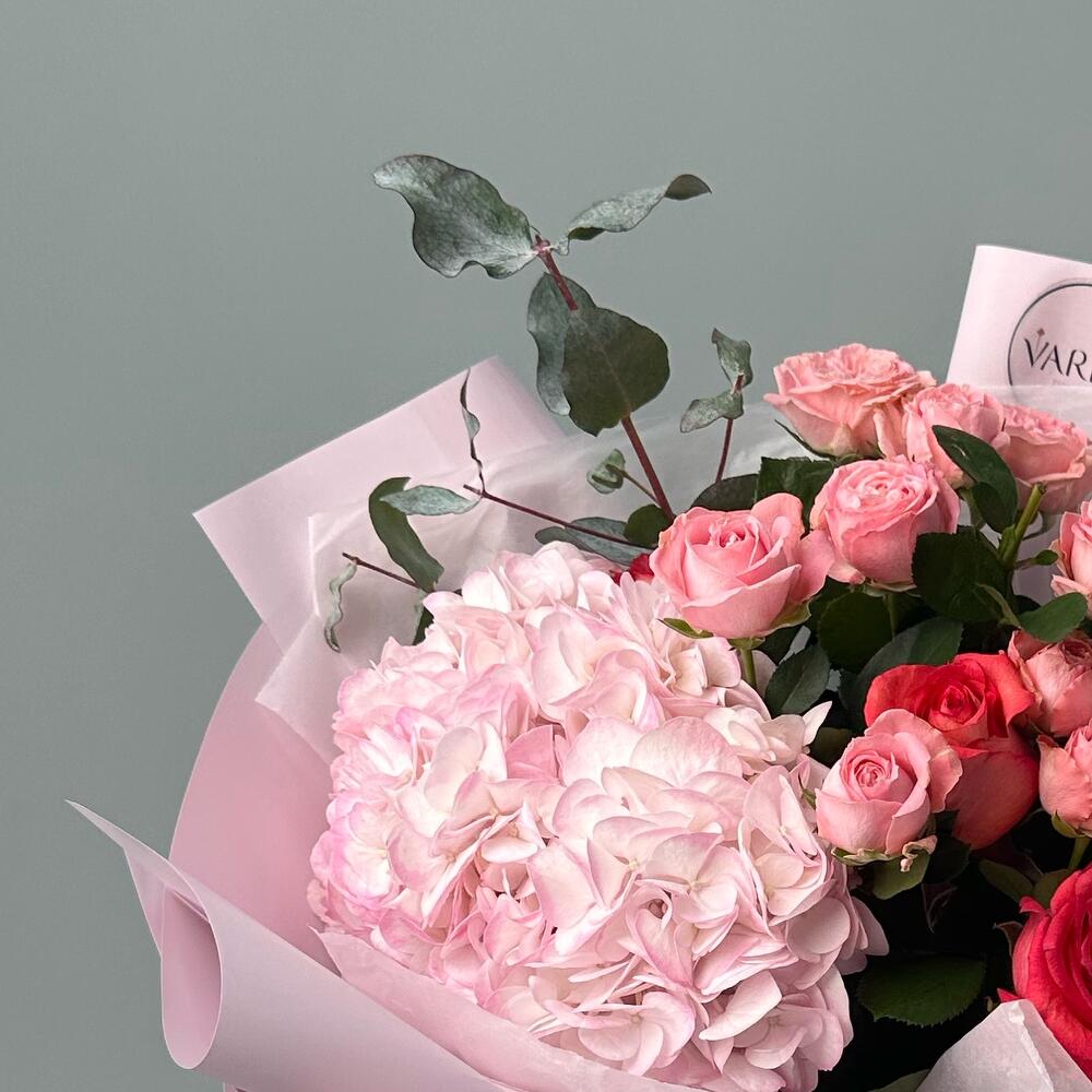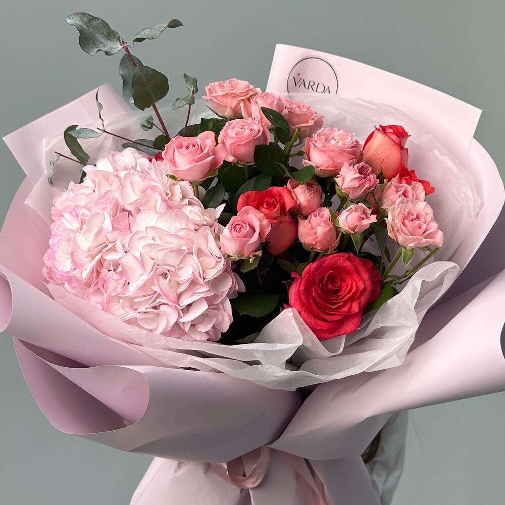 Альстромерии, Кустовые розы, Лизиантусы, Пионовидные розы, Розы, Ромашки