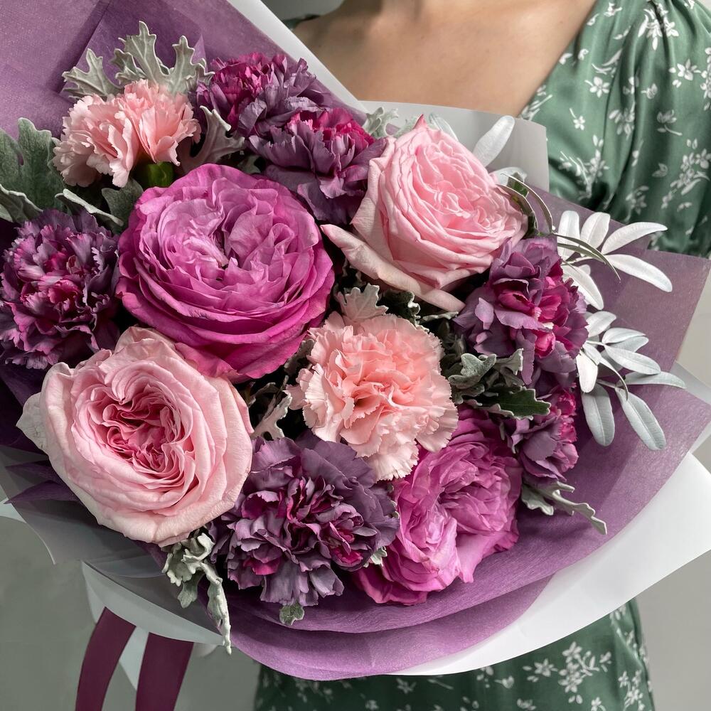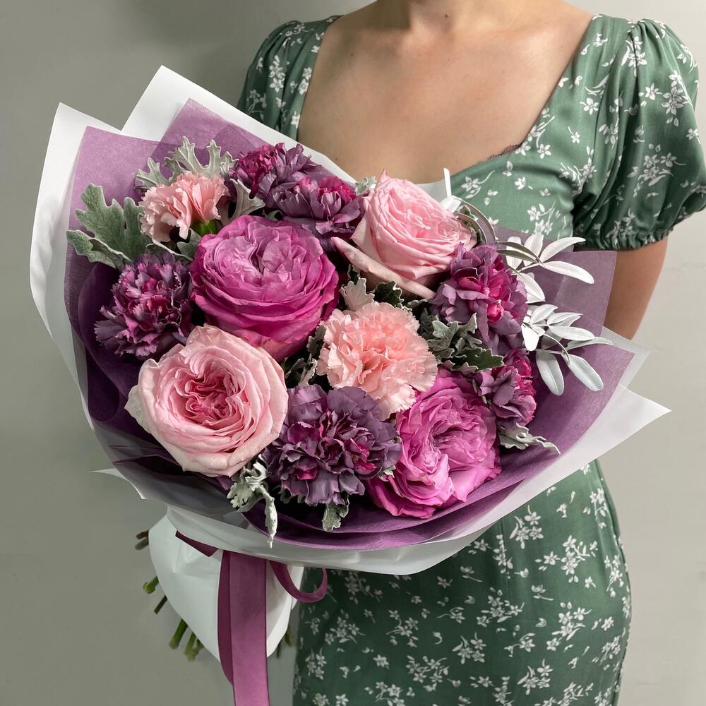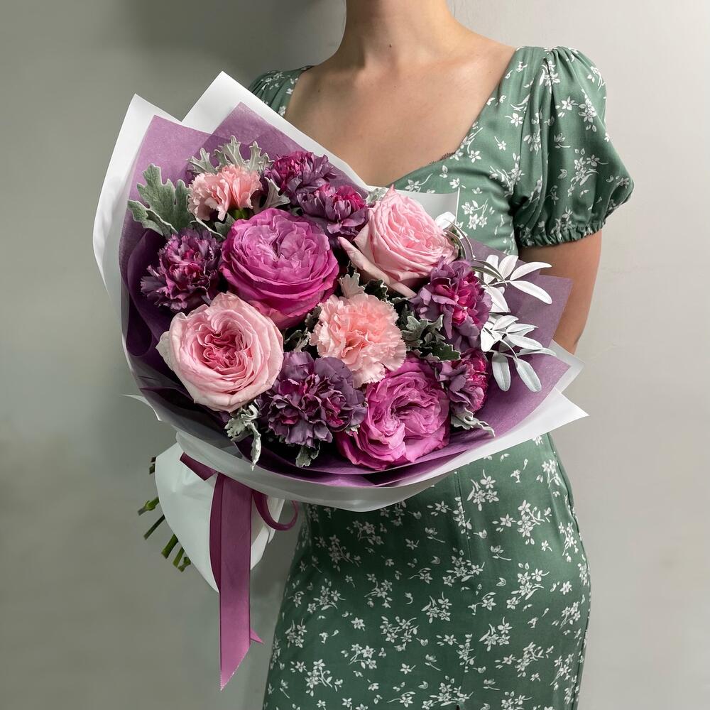 Гвоздики, Кустовые розы, Лизиантусы, Пионовидные розы, Розы