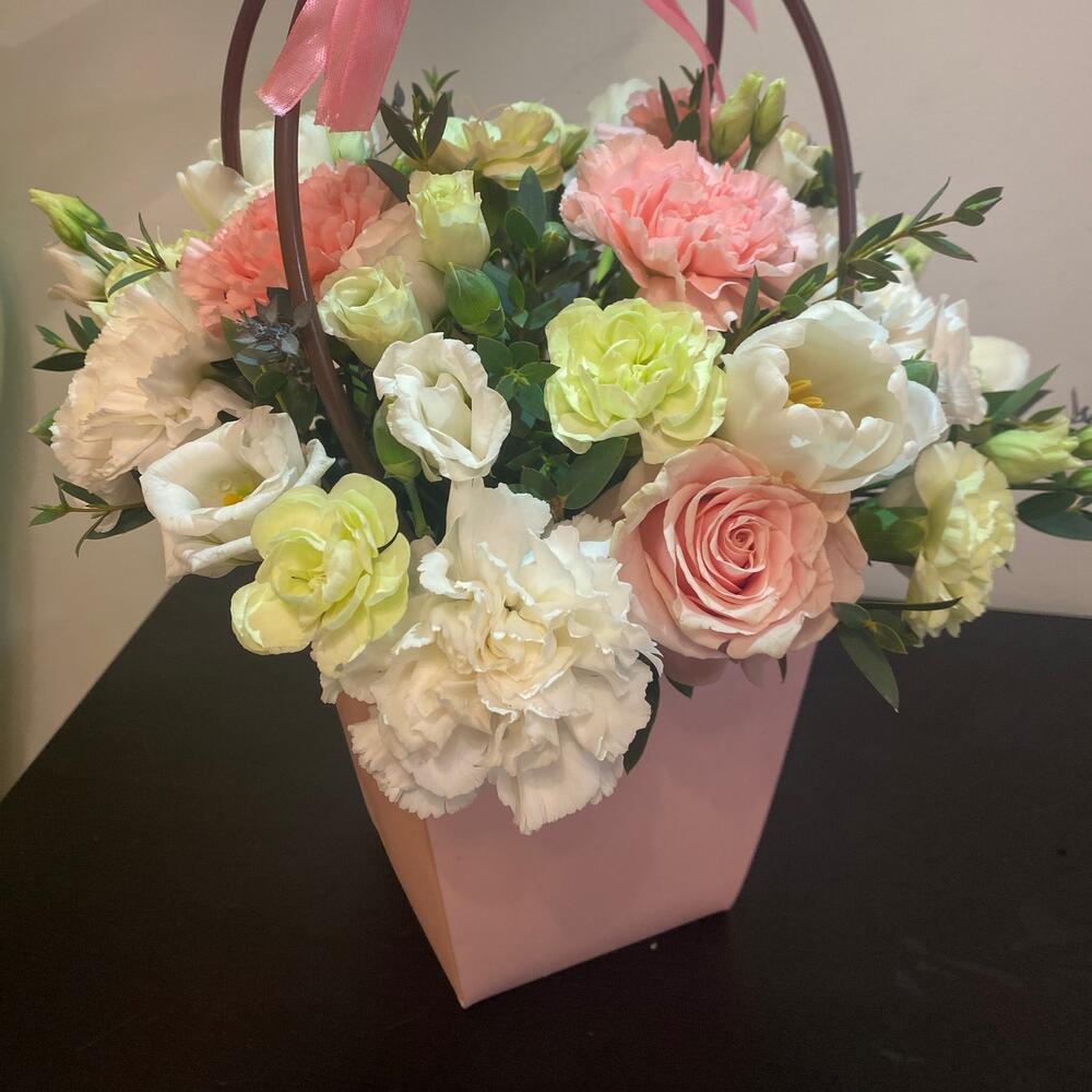 Гвоздики, Кустовые розы, Пионовидные розы, Розы