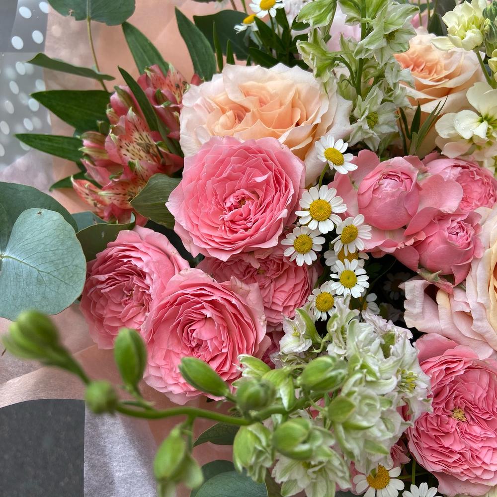 Гвоздики, Кустовые розы, Пионовидные розы, Розы