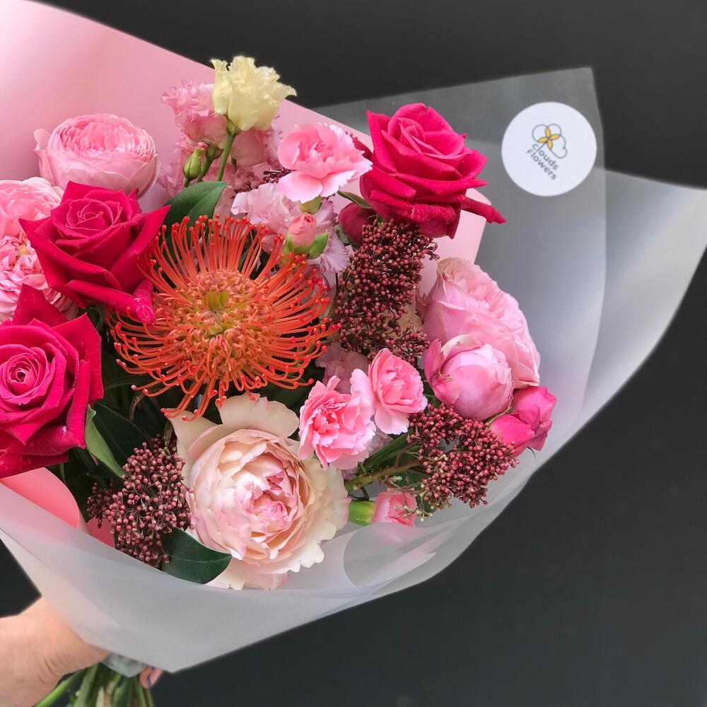 Категорий: Гвоздики, Кустовые розы, Лизиантусы, Пионовидные розы, Розы